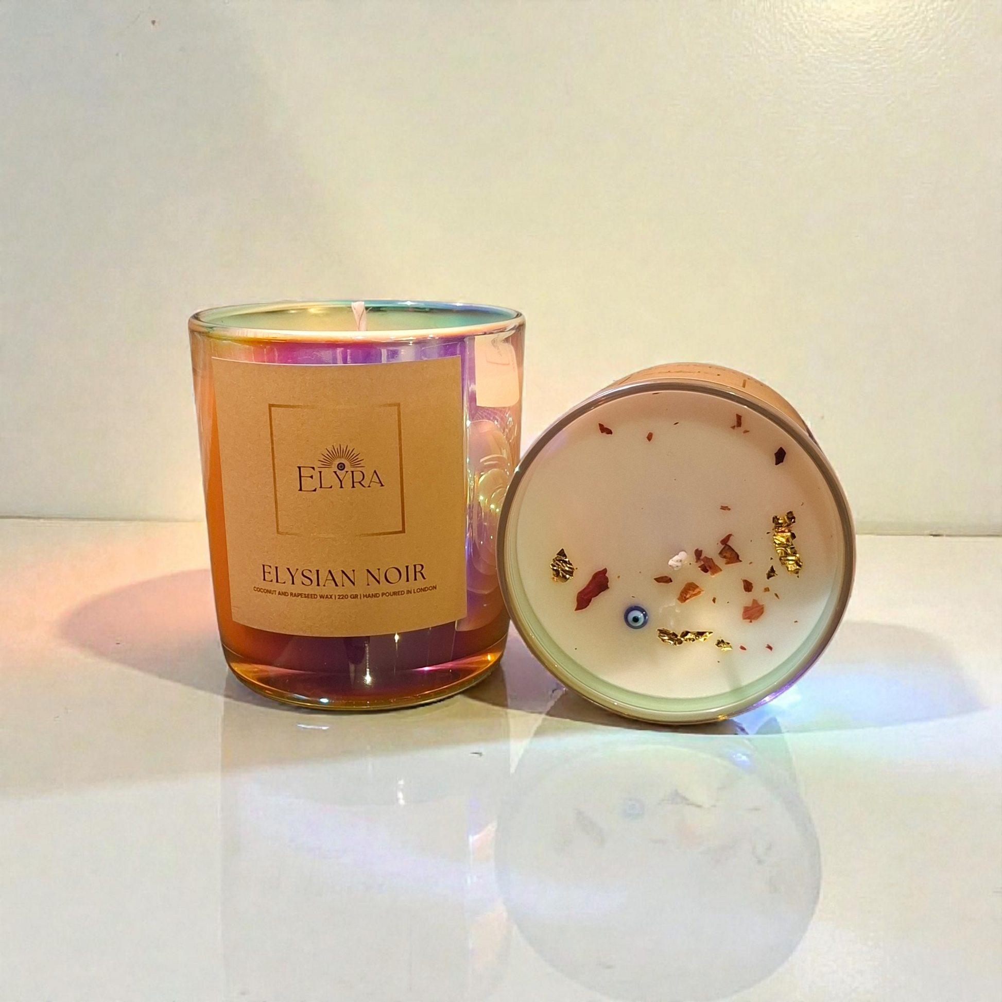 Elysian Noir opens with luminous notes of plum, cassis, rose, and sweet orange. A radiant burst that awakens the senses. At its heart, spiced black cherry, cinnamon, and clove weave a sensual depth, evoking warmth and mystery. Finally, patchouli, tonka, and vanilla blend into a velvety base, leaving a lingering embrace that is both grounding and luxurious.